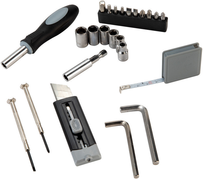 Tu aliada ideal para cualquier lugar y momento. Linterna con set de herramientas. Batería de litio recargable. Linterna desmontable con base imantada. El set incluye: 2 llaves bristol hexagonales de 4 y 6 mm., 1 bisturí de hoja ancha, 1 cinta métrica de 1m., 2 destornilladores de precisión (punta plana y estrella), 1 mango de destornillador, 1 barra de extensión, 1 conector, 9 puntas de destornillador (2 planas, 3 estrella y 3 torx), 6 llaves copa (5 a 10 mm.) y 1 cable de carga color blanco.