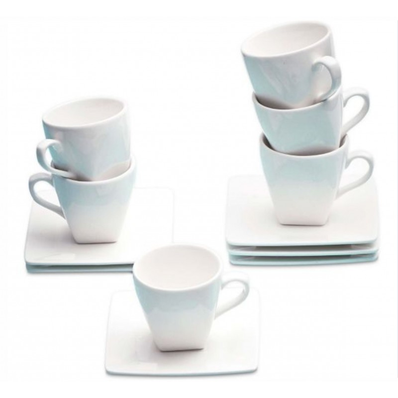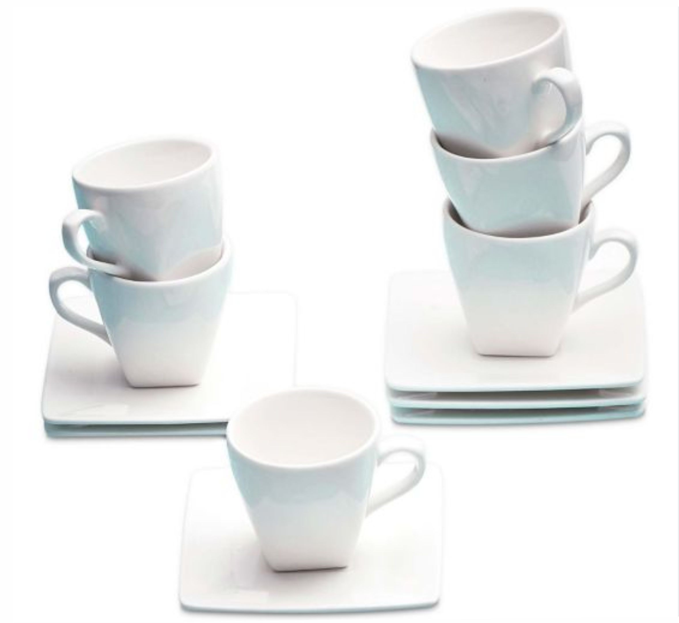 Pocillos cónicos y platos cuadrados con base amplia, diseño moderno y sofisticado que brinda una apariencia adecuada para cualquier situacion.