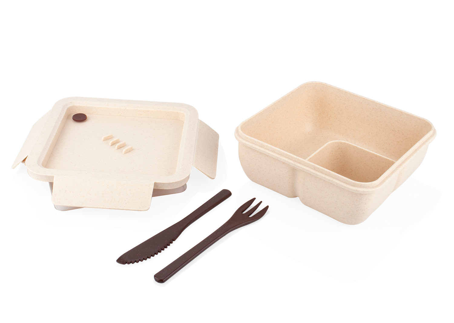 Fabricado en material de paja de trigo PP, con tapa transparente de PS. Incluye cuchillo (2,1 X 15,5) y tenedor (2,6 X 15,5) de PP, ideales para el uso diario. Su diseño con compartimentos permite organizar los alimentos de forma práctica. Una opción ecológica y funcional para transportar tus comidas, promoviendo un estilo de vida responsable con el medio ambiente.