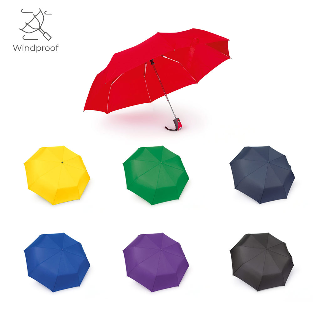 Materiales: 190T Pongee. Mango con acabado en caucho enchape en niquel.