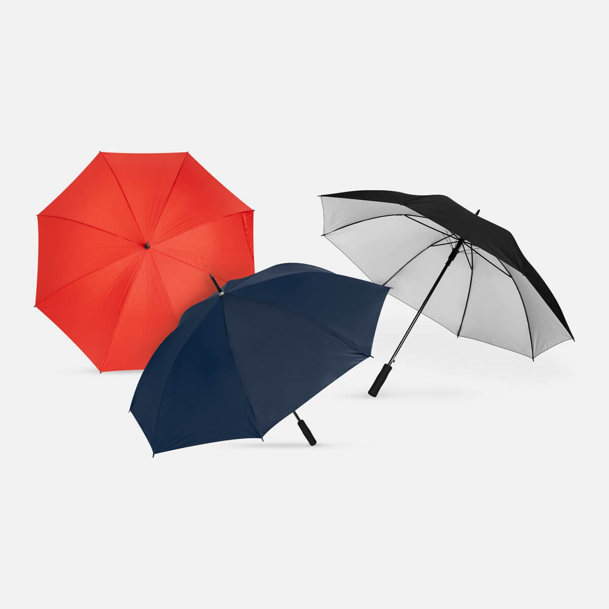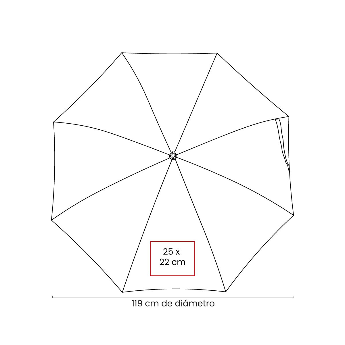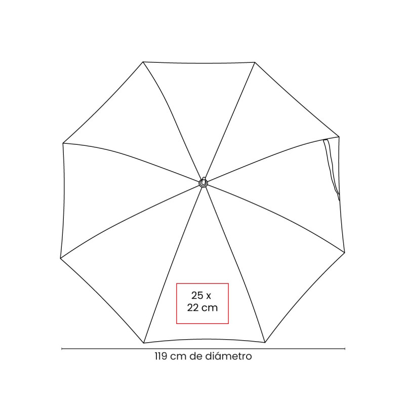 Paraguas de 8 paneles y mango de EVA. Sistema de abertura automatica. Incluye recubrimiento interno como proteccion UV.