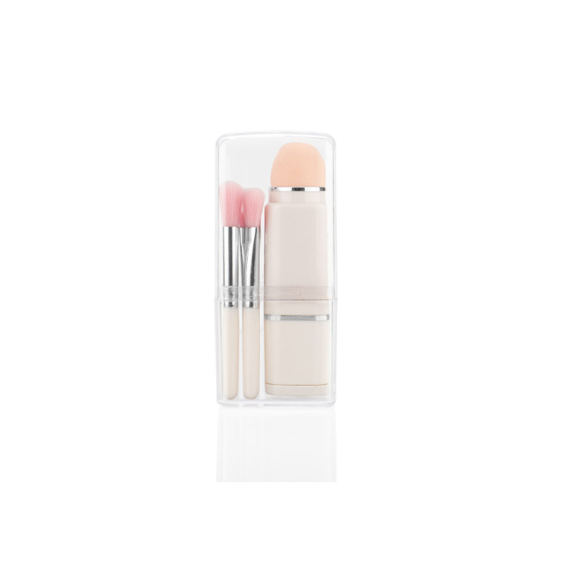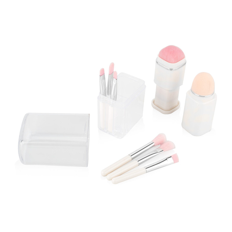 Juego de brochas de maquillaje con diseño compacto y funcional, que incluye 8 piezas organizadas en un estuche con cierre a presión: una bocanada de polvo (2,5 cm), una brocha para polvos (3,5 cm), un pincel para difuminar (1,5 cm), pinceles para sombras en tres tamaños (1,1 cm, 0,8 cm y 0,75 cm), un cepillo para cejas (0,7 cm) y un pincel para labios (1,4 cm). Perfecto para lograr un maquillaje completo en cualquier lugar gracias a su formato portátil y práctico.