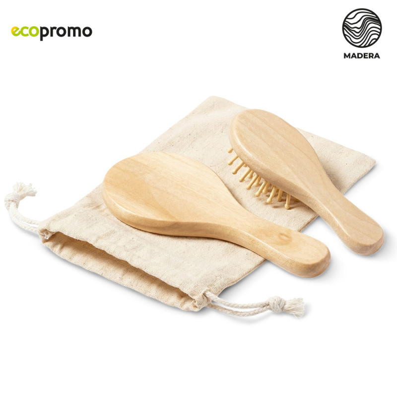 Set de espejo y cepillo en madera natural. Con bolsa en algodón. Artículo para uso personal, no se admiten Cambios/devoluciones.