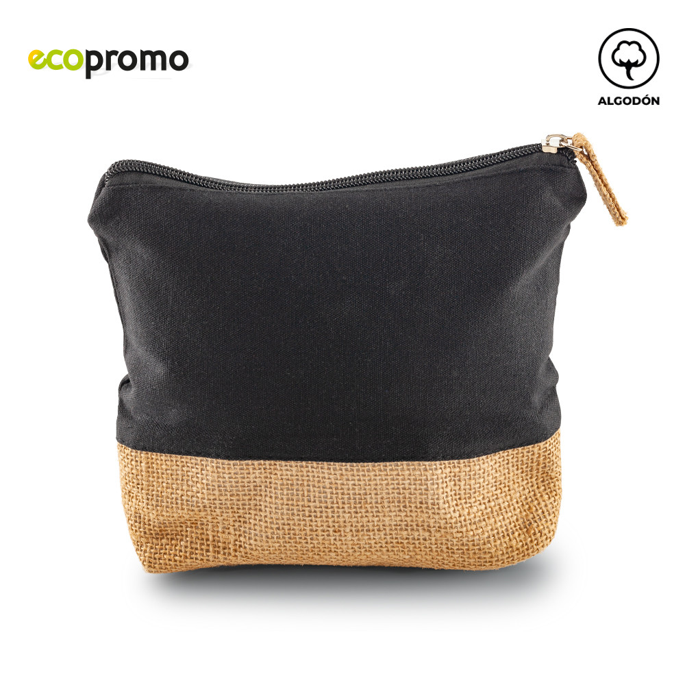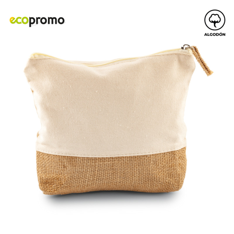 Cosmetiquera en algodón con yute. Cierre de cremallera.