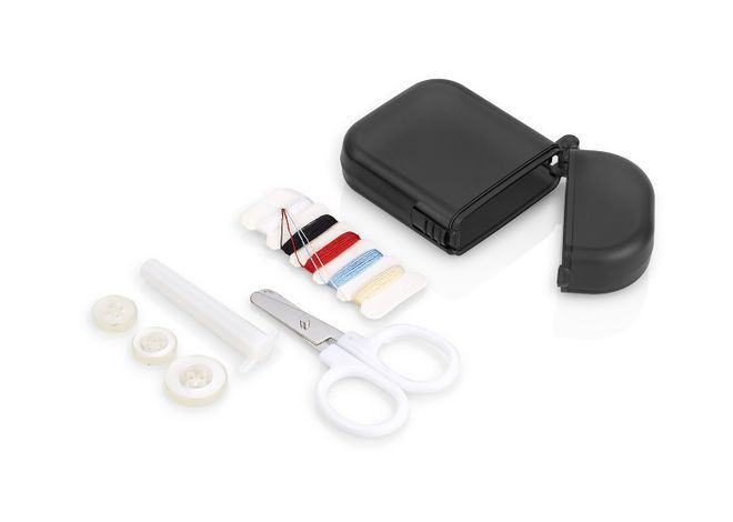Costurero Travel, Minicosturero incluye hilos de colores, Estuche para guardar agujas, tijeras, tres botones.