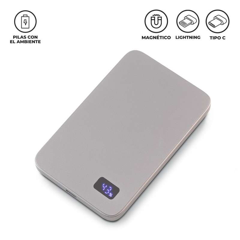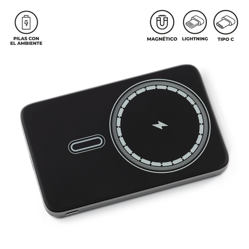 Con imán para carga inalámbrica y display de carga. Un puerto Tipo C para carga. Empaque caja individual.