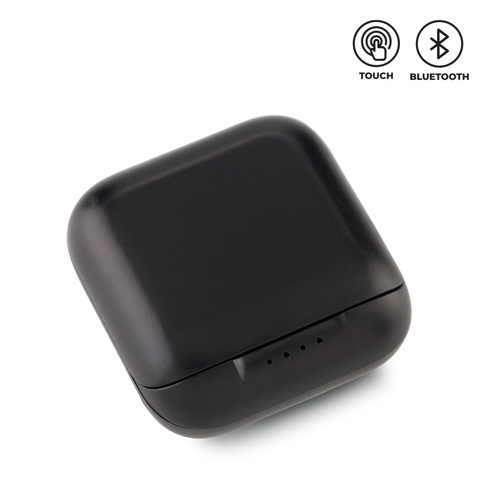 Audífonos Bluetooth plásticos con estuche portátil de recarga. Versión del bluetooth: 5.3. Capacidad de la batería: 300mAh. Mandos por touch. Empaque caja individual.