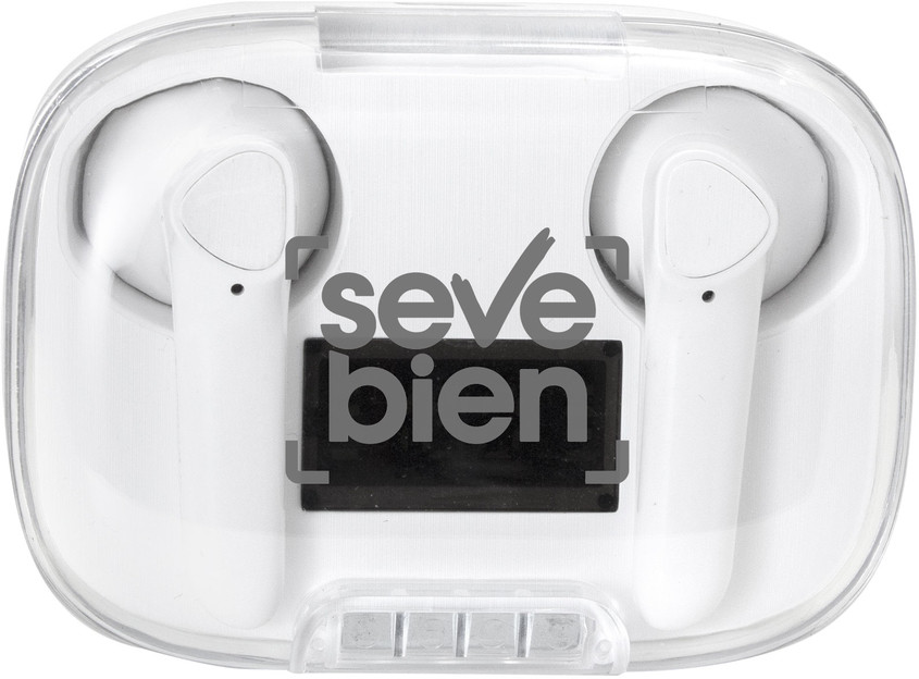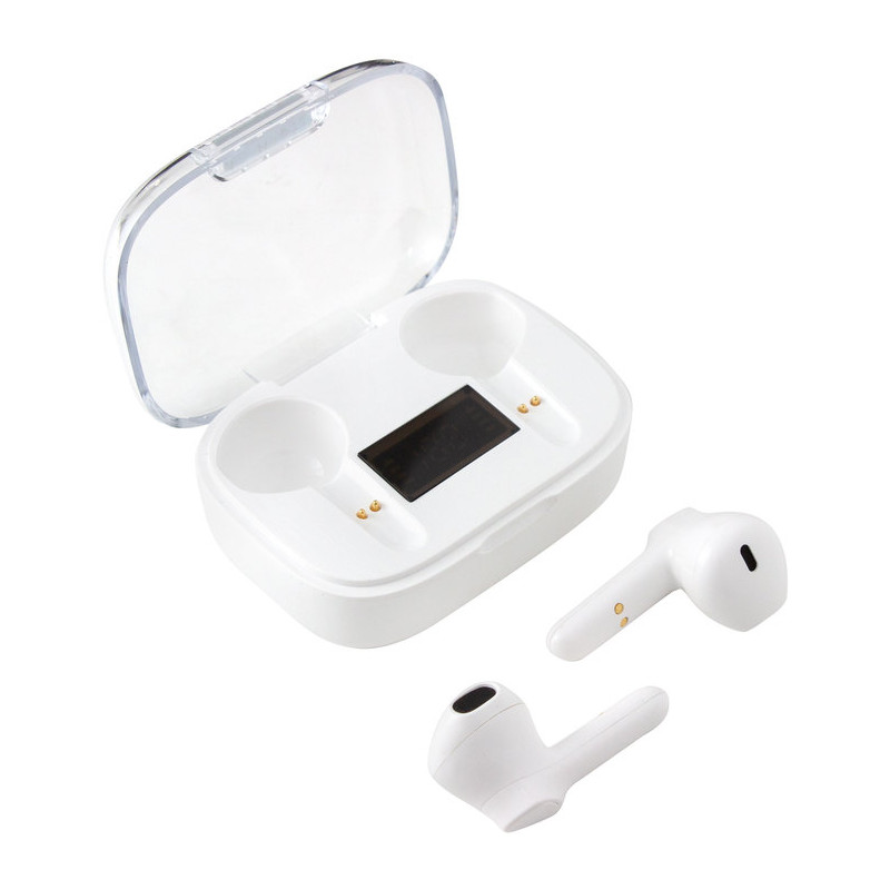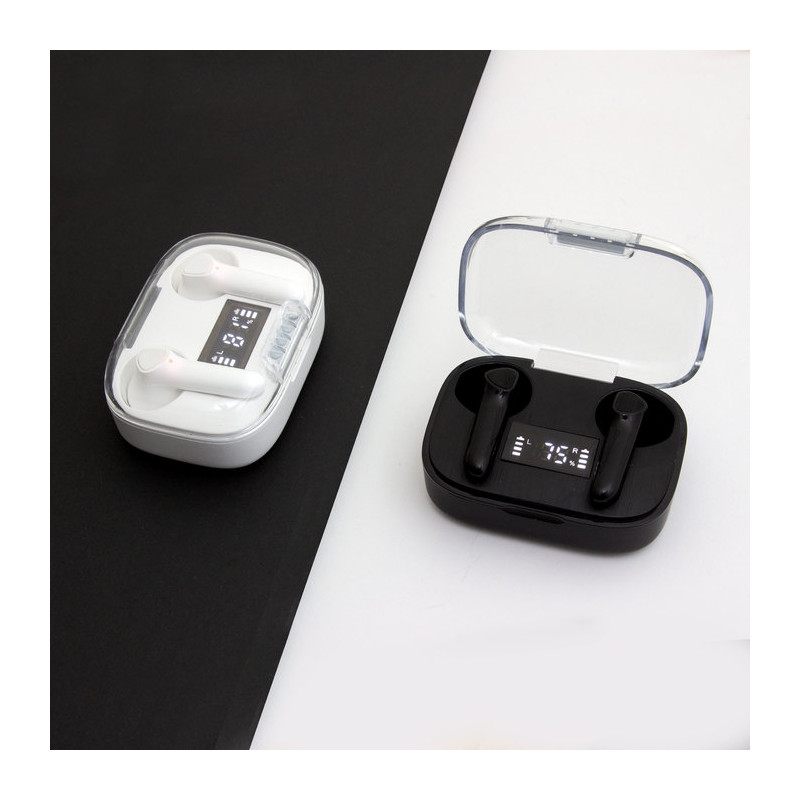 Sonido nítido, sin cables Audífonos Bluethooth. Pantalla digital y tapa transparente. Rango de alcance: 15 metros. Tiempo de reproducción: aprox. 3 horas. Tiempo de Carga: 1 hora Duración de la carga en inactividad: 200 horas. Cable de carga USB tipo C en color blanco para audífonos blancos, y en color negro para la versión en negro.