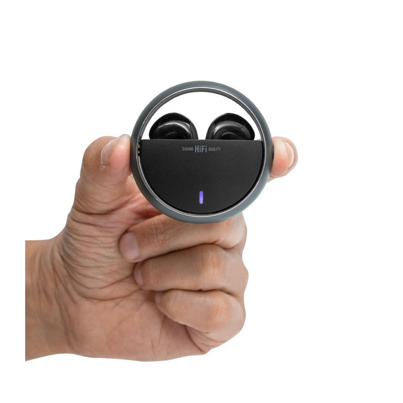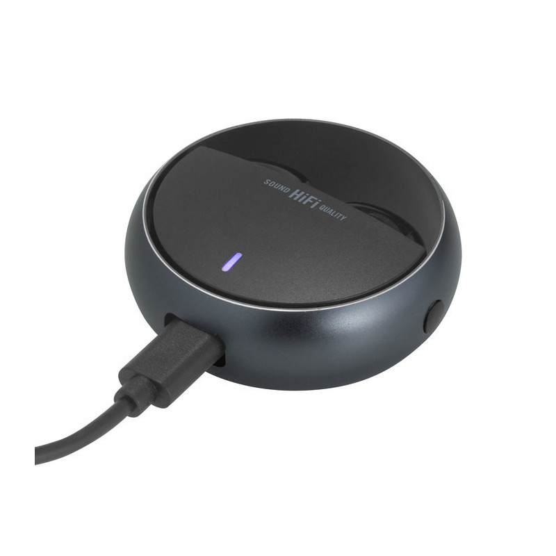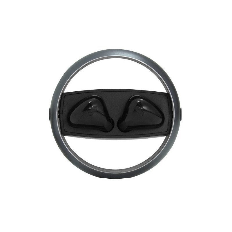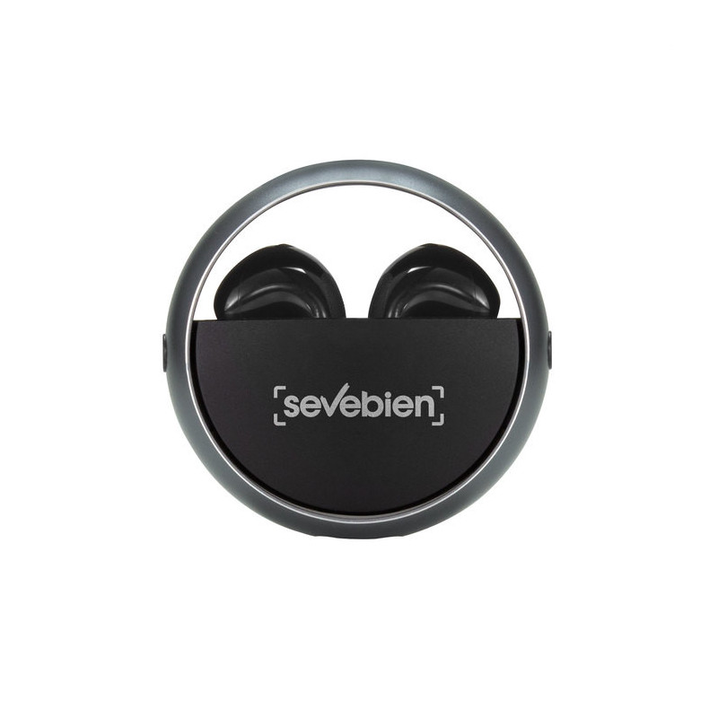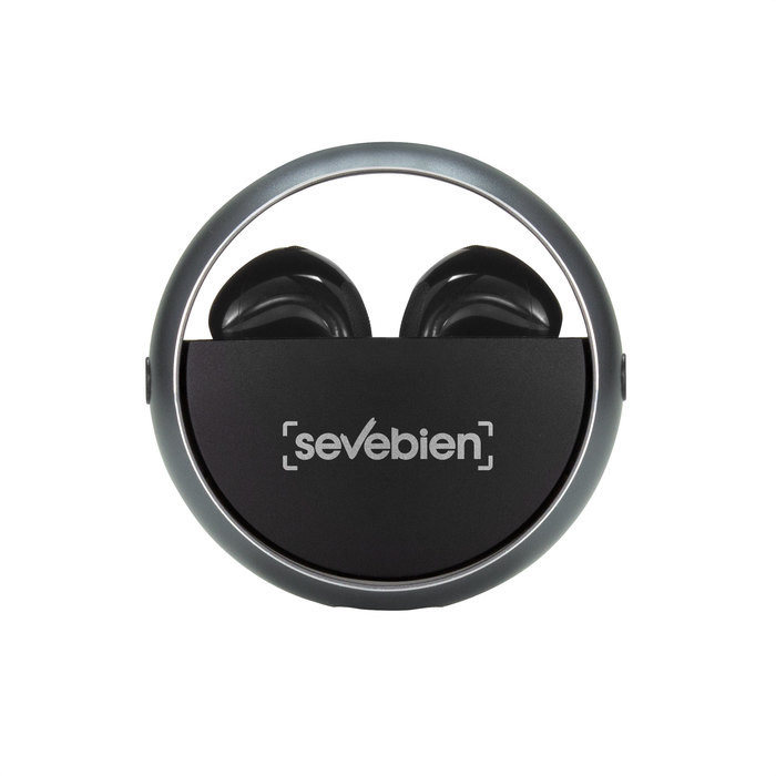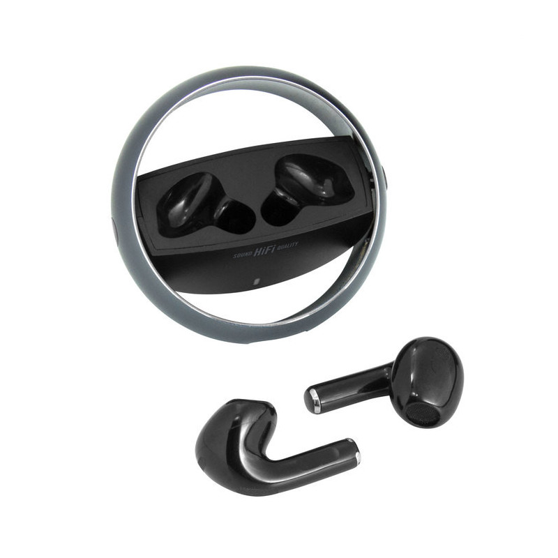 Plástico ABS. Aluminio. Auriculares TWS color negro. Sonido de calidad HI-FI. Versión Bluetooth V5.3. Rango de alcance 10 metros (en áerea abierta). Tiempo de reproducción 4 horas. Capacidad de la bateria: 25 mAh para los auriculares, 230 mAh para el estuche de carga. Los auriculares se colocan en el estuche de carga con marco de aluminio giratorio. Accesorios: cable de carga USB tipo C en color negro. Incluye manual de usuario. Presentación en caja de regalo color negro mate.