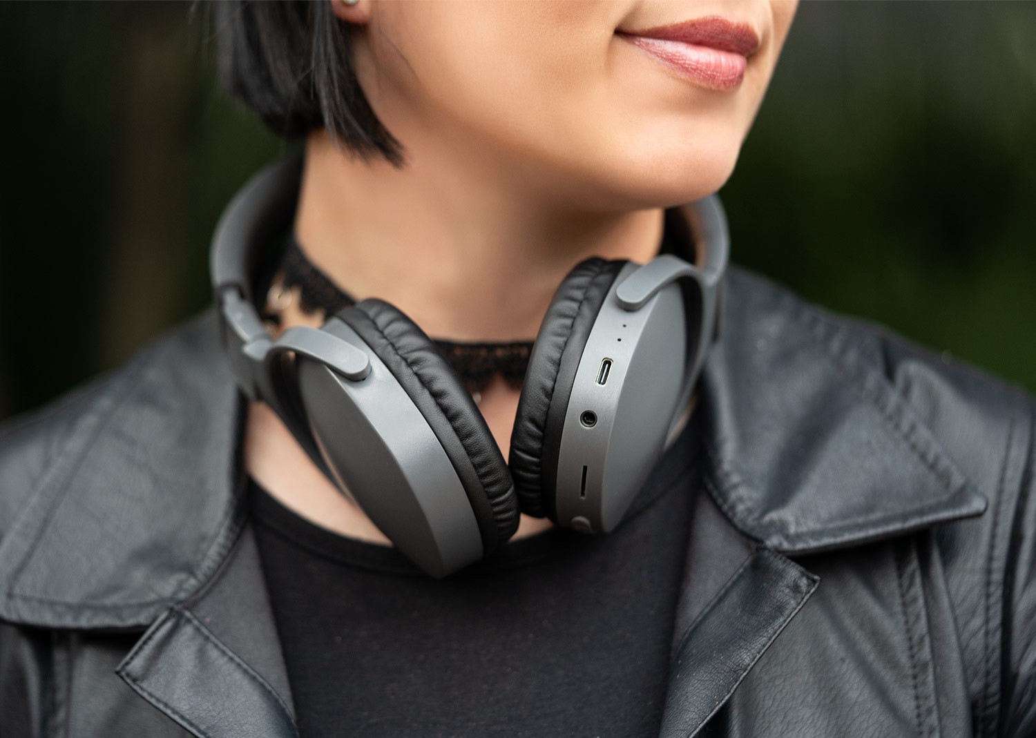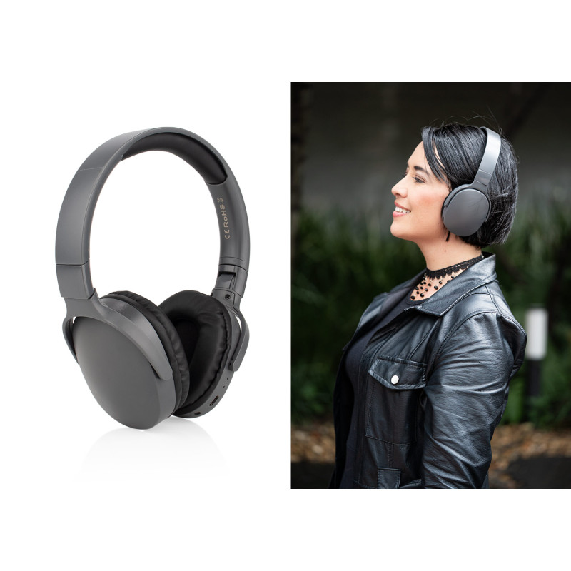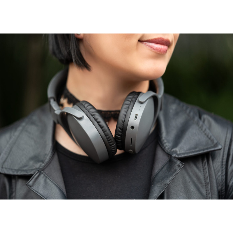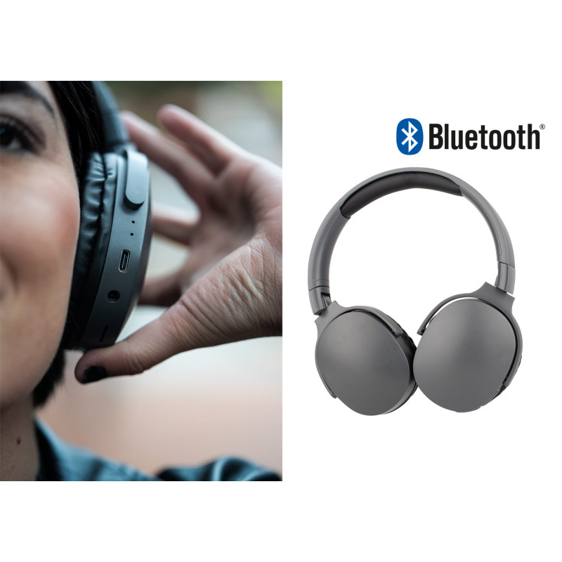 Audífonos Bluetooth 5.3, conector AUX para cable 3.5 mm, compatible con tarjeta TF y radio FM. Tiempo de uso aproximadamente 8 horas, puerto de carga Tipo C. Distancia de trabajo hasta 10 metros. Cuenta con botones para aumentar y disminuir volumen. Los audifonos pueden cerrarse.