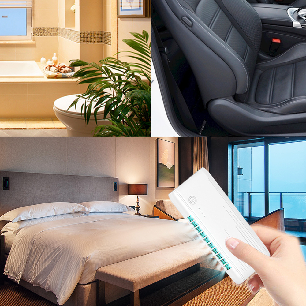 Doble combinación de pila recargable y luz germicida ultravioleta. La luz germicida ultravioleta puede matar bacterias y virus de manera eficiente: Hasta 99% de germenes y bacterias con la luz encendida y pasando lentamente por la superficie a esterilizar en un período de 20-25 minutos. Con diseño de doble gancho, conveniente para colgar durante el tiempo que esteriliza. Protección de sobrecarga y descarga incorporadas, resistente, inteligente y portátil, textura especial, las funciones de esterilizar y pila recargable se deben ejecutar por separado. Input: DC 5V 2A / 3W. Empaque Caja individual.