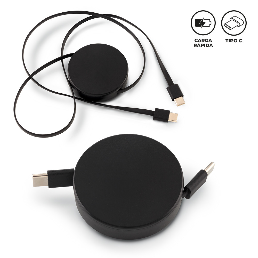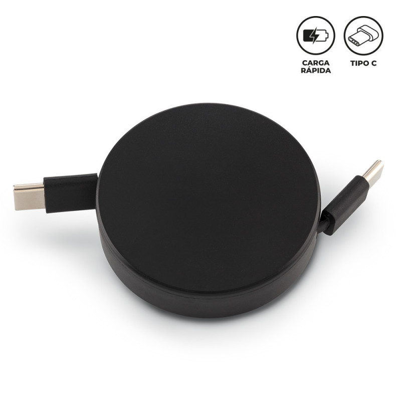 Cable plástico multicargador retráctil. Con carga rápida de 65W. Con conexión Tipo C.