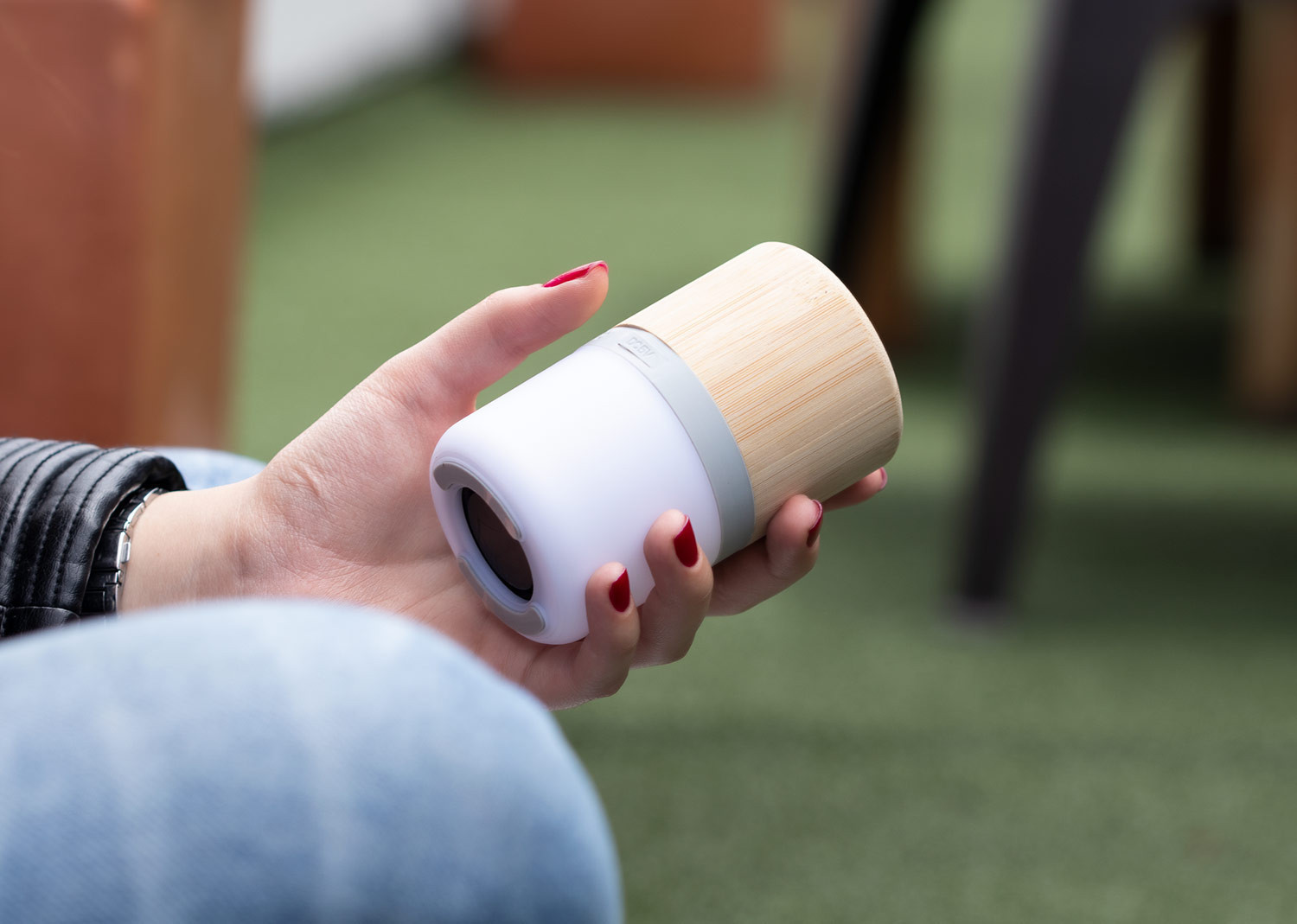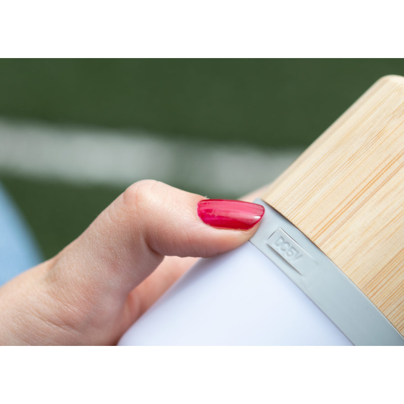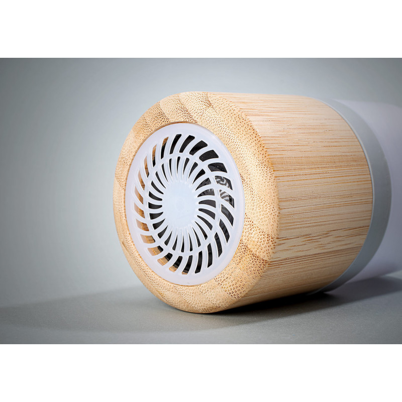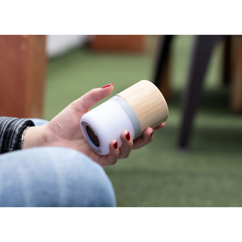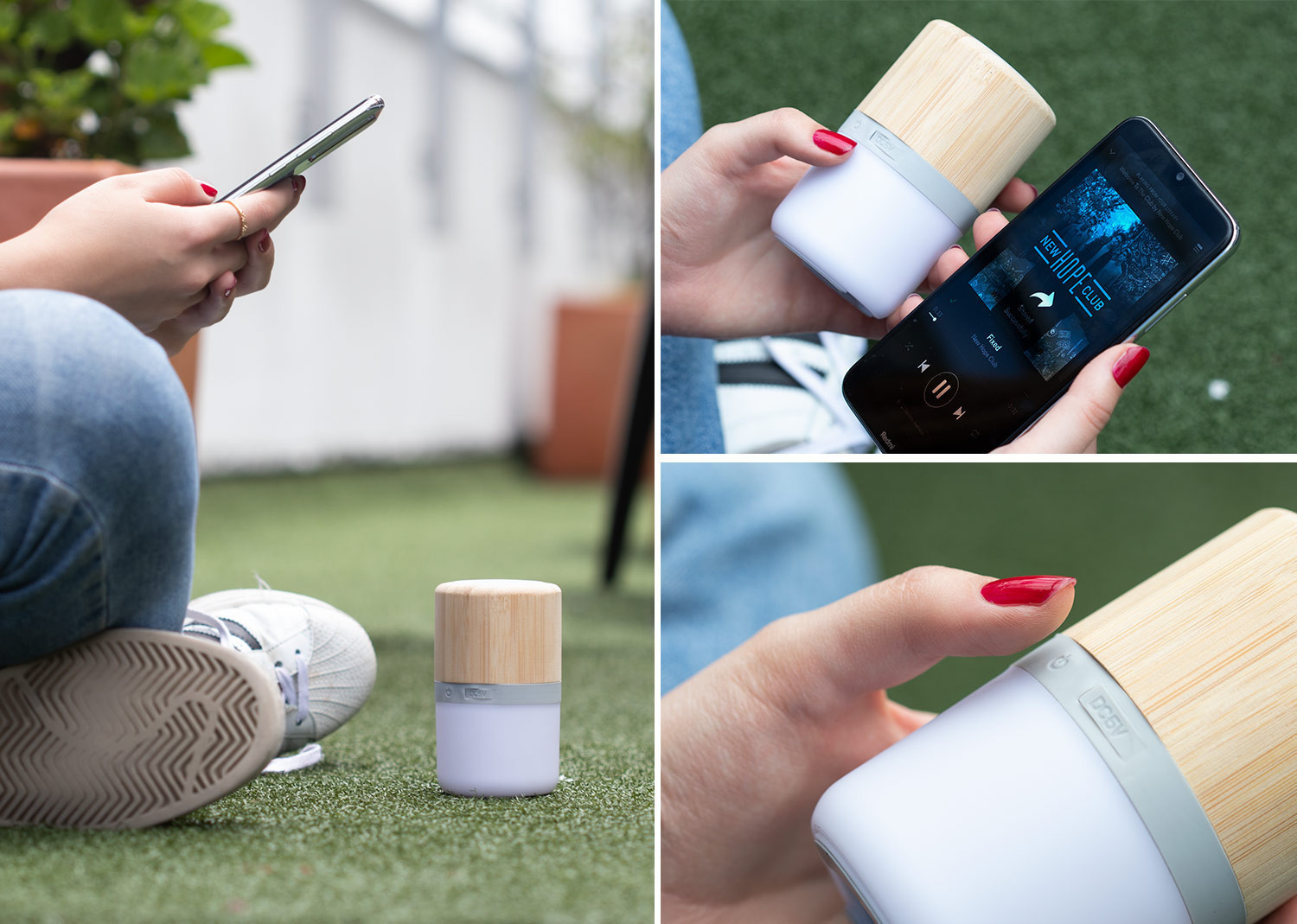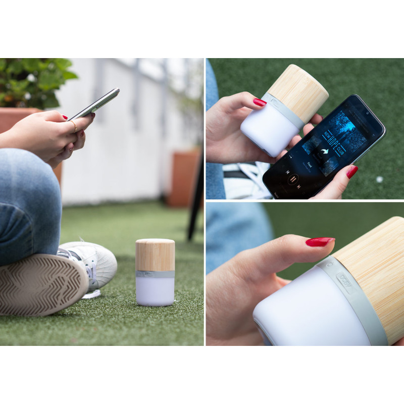 Parlante Bluetooth versión 5.0. Con luces led color blanco y rosado (cambia oprimiendo un boton). Potencia nominal: 4 Ω 3 W * 1. Batería 350mAh con una duración de 2 a 3 horas. Tiempo de carga aproximado de 2horas. Indicador LED de carga. Distancia de conexión máxima 10 metros. Incluye cable USB de carga.