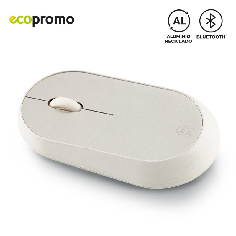 Mouse plástico inalámbrico con aluminio reciclado. Conexión automática mediante transmisor USB incluido. 1 Pila AA (no incluida).