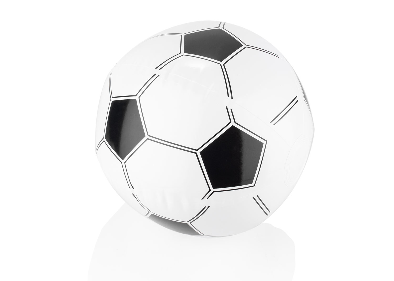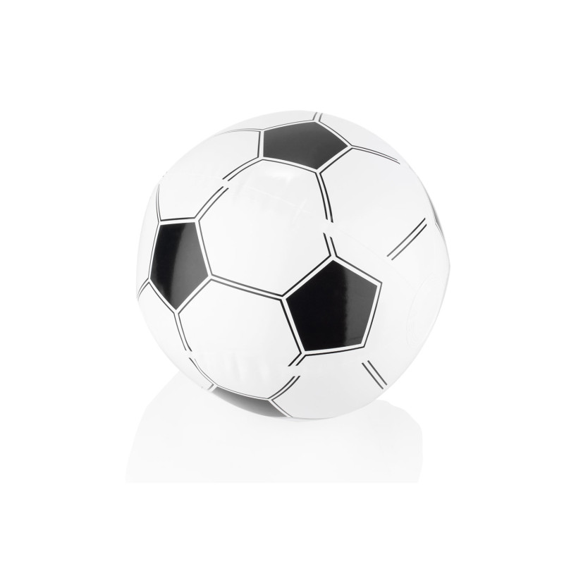 Pelota inflada de PVC con diseño bicolor compuesto por paneles hexagonales en color blanco y pentagonales en color, que le dan un estilo dinámico y llamativo. Ligera y fácil de transportar, es ideal para juegos recreativos o actividades deportivas ocasionales.