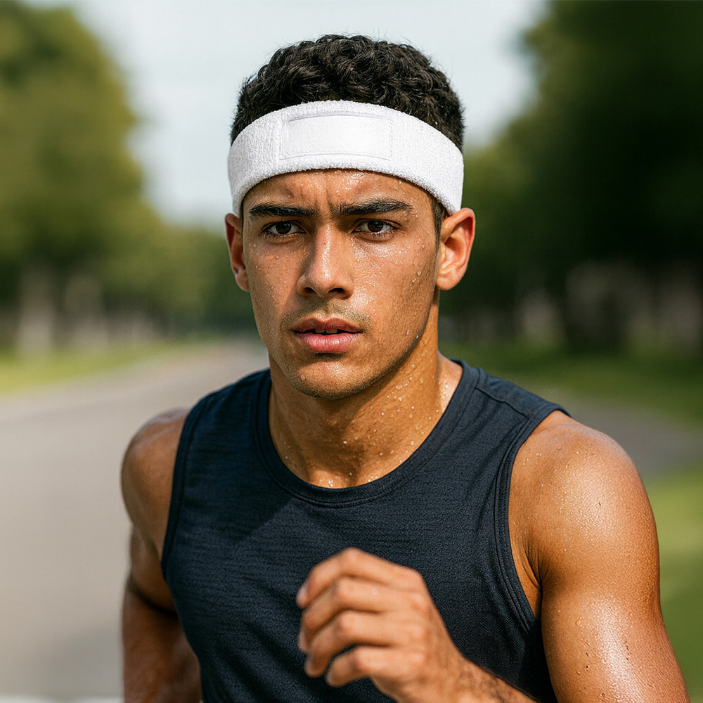 Balaca deportiva para el sudor en poliéster. Con parche para logo.