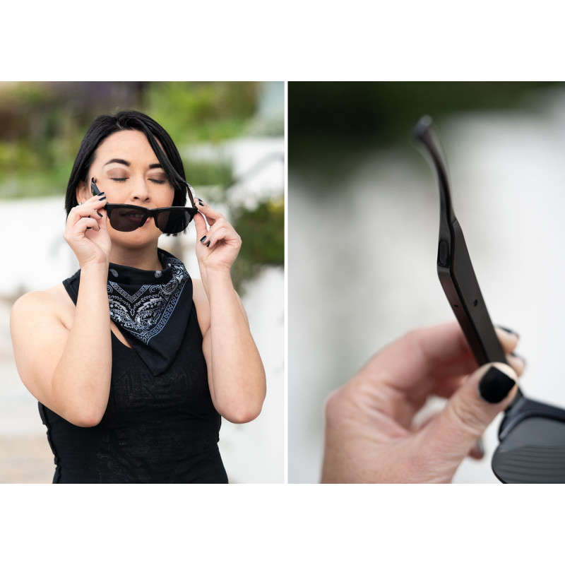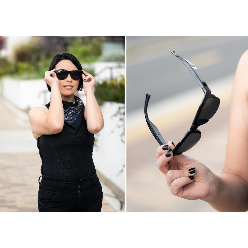 Gafas de sol (Filtro UV400) con auriculares incorporados, fabricadas en plástico ABS y policarbonato. Clasificadas como Tipo C, integran protección ocular con tecnología de audio avanzada. Cuentan con certificación de resistencia al agua IPX4, lo que las hace ideales para actividades al aire libre. Su diseño ergonómico ofrece comodidad, funcionalidad y estilo en un solo dispositivo.