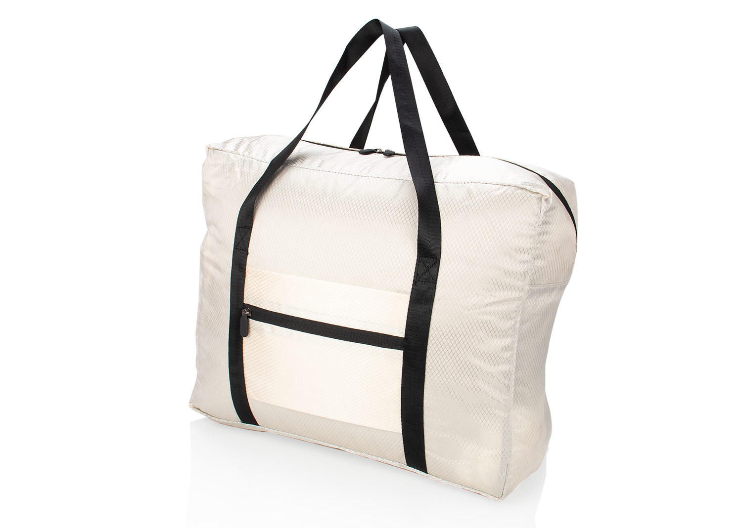Bolso plegable con diseño funcional que incluye correas para sujetar al equipaje, facilitando su transporte en viajes. El bolsillo pequeño se convierte en estuche para guardar el bolso cuando no está en uso, y la cremallera principal cuenta con doble carrito para mayor comodidad al abrir y cerrar.
